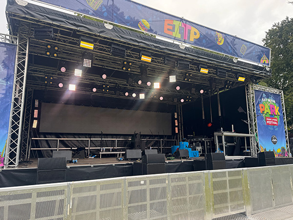 If you would like to take advantage of the branding opportunity on the mobile stage the PA wings will need banners. These would need to be made from mesh so the sound from the speakers can travel through them. Banners for the PA wings on the ES42 mobile stage are 3200h x 2100w.
